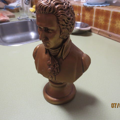 En gammel buste af Mozart, som er i gips, maler mat hvid, skrift bag på 1183, C.R.L. Mål 29 x 17 cm, Søgeord ! Samler, buste, figur, statue, indbo, pynt, dekoration, Deco, samleobjekt, musik. Klassisk , indretning, SENDER KUN MED DAO ELLER AFHENTNING.