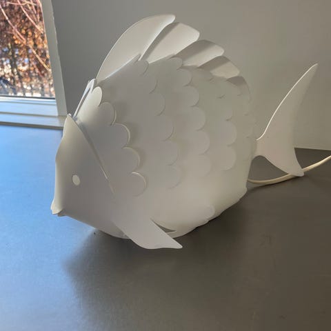 Lille hvid fisk fra crea lampe har forskellige farver når du tænder den usb stik