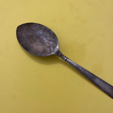 Smuk Ske, Metal & Porcelæn, 100 år gl.