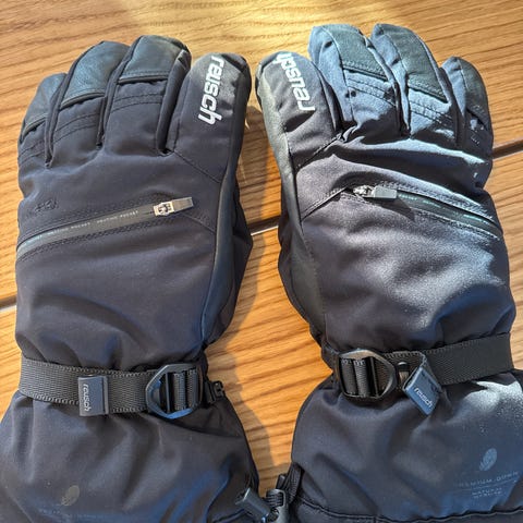 Reusch skihandsker i sort farve, størrelse 5.5. Handskerne er designet til vinterbrug og har forstærkede områder på håndfladen for bedre holdbarhed.