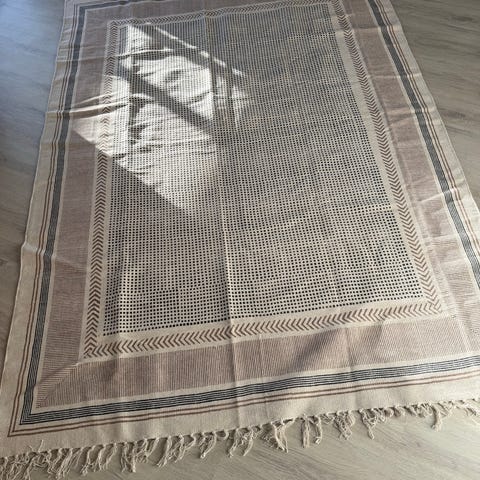• Colorful 2 inch fringe to prevent fraying and frame the design