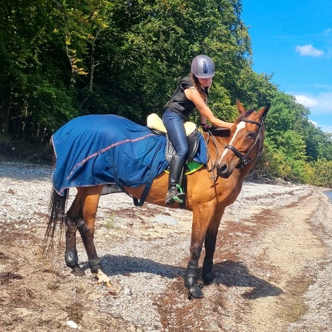 Han er ikke redet de sidste 4 år, så han er ikke alderssvarende uddannet, men er nu sat igang igen og han er helt igennem sød og rar. En hest, der gerne vil arbejde! Han mangler styrke, muskler, bæring og at tabe sig lidt.