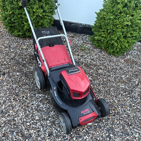 AL-KO Comfort 34 E er en elektrisk plæneklipper med en klippebredde på 34 cm. Den har en rød og hvid farve og er designet til effektiv græsslåning i private haver.