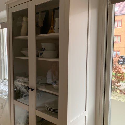 Udgået, hvidt vitrineskab fra IKEA i god stand