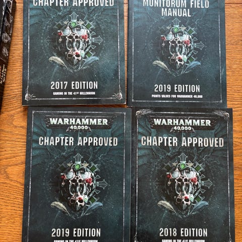 Warhammer 40.000 Recruit Edition, startpakke, der indeholder 20 Citadel miniaturer inklusiv 6 Space Marines, 11 Necrons og 3 Canoptek Scarabs. Sættet inkluderer også regelark, 10 sekssidede terninger, klistermærker, terræn (kort/bygning) og spilmanualer, så man kan starte.