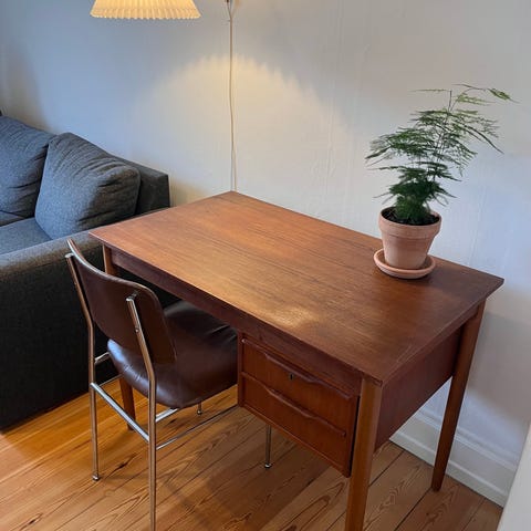 Skrivebord / sybord i teak i fin og velholdt stand med ganske få brugsspor. Bordet har lige fået olie.