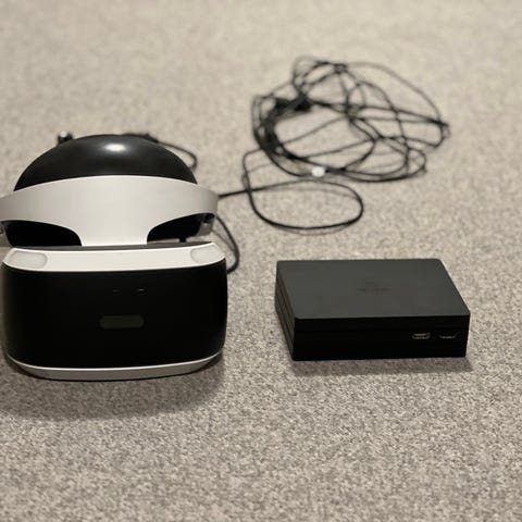 PS4 VR-headset m. alt udstyr, PS5-adaptor og et enkelt spil