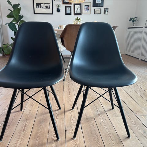 2 stk. Eames stole nærmest uden slitage da de ikke er blevet brugt i hverdagen.