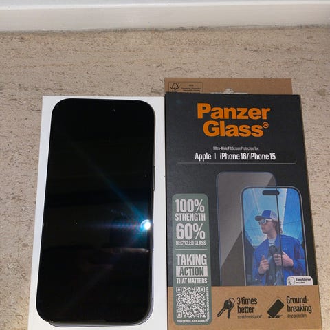 Apple iPhone 16 med 128 GB lagerplads i sort farve. Enheden leveres med original emballage og et blåt beskyttelsescover. Købt i Power 3-12-2025. Aldrig brugt Kun åbnet for inspektion. Kvittering medfølger.