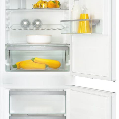 Flot fritstående Miele køle-/fryseskab med højde på 161 cm. Her finder du LED-belysning, som er vedligeholdelsesfri og energibesparende: Det effektive og langtidholdbare LED lys sørger for optimalt lys. Hurtig rengøring af dørhylderne med ComfortClean, som kan vaskes nemt i opvaskemaskinen. Med VarioRoom har du meget fleksibel opbevaring. Fryserummet kan udvides, så der også er plads til de store frysevarer.