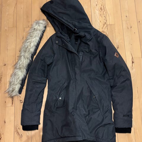 Virkelig lækker og varm vinterjakke i sort med flot “pels” kant omkring hætten. Kan smøres ind i livet. Lukkes med både lynlås og knapper. Stofmanchet ved hvert ærme så man undgår at der kommer sne og kold vind ind i ærmerne. Lækker blødt indsats ved kraven så den føles lækker og blød. Lynlås og knapper i “guld”. Virkelig kraftig og tung kvalitet. Fejler intet. Fremstår som næsten ny. Kun brugt få gange. Kan også passe en str 46. Kraftig kvalitet. Kan evt hentes i Græsted, Farum eller Hellerup.