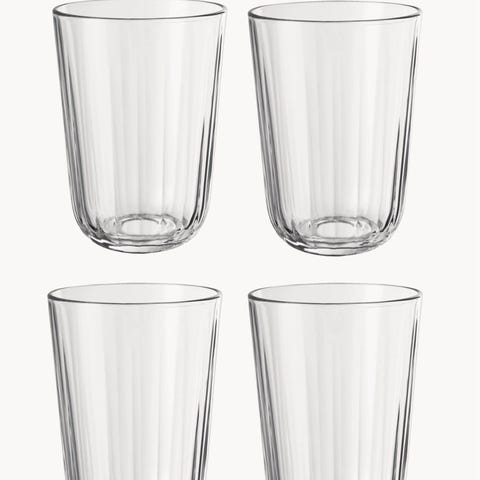 Eva Solo glas i klar glas med en kapacitet på 38 cl. Sættet indeholder 4 stk. Glasene er designet til almindelig brug og kan anvendes til servering af drikkevarer. Der er 12 glas i alt. God stand, mangler blot at blive vasket op i hånden, så står de som nye.