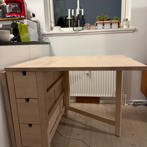 Sælger dette hvide NORDEN klapbord fra IKEA. God stand, men malingen er krattet af et par steder, som kan ses på billede 3 og 4, men ikke noget der ses tydeligt.