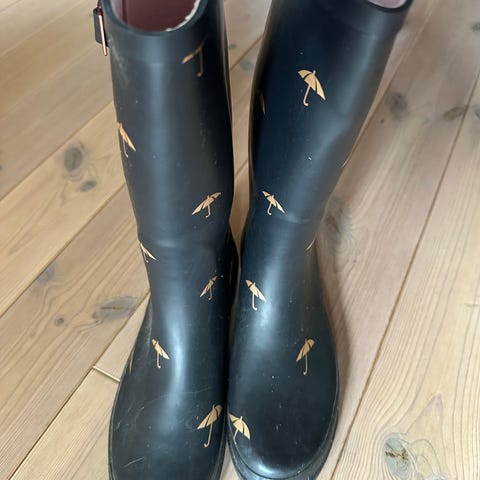 Fine gummistøvler str 37 men passer også en 38 som jeg selv bruger og jeg passer dem. Kun brugt 2 gange så fremstår som næsten nye. Højde: 24 cm.