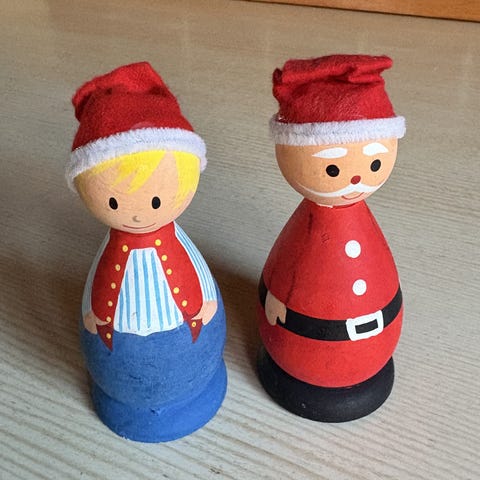 Sæt med 2 svenske trænisser. De er ca. 9 cm høje og sælges samlet. Står flot.