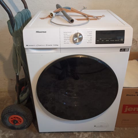 Virker perfekt, sælges da den ikke bliver brugt. Skuffen til vaskepulver er aldrig brugt.