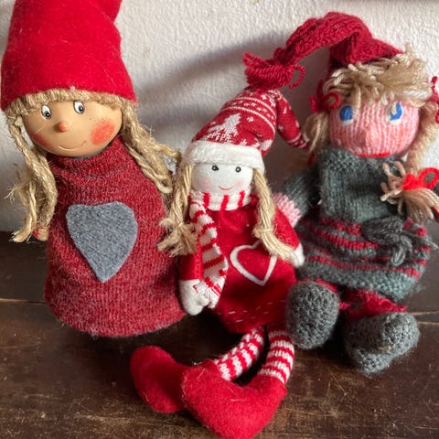 2 søde nissepiger der sidder og kæler med en kat.