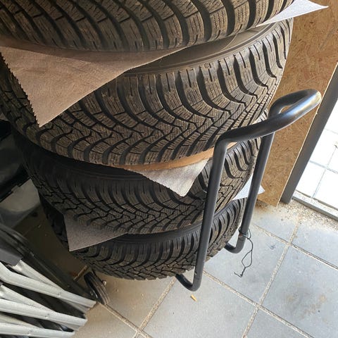 Vogn til opbevaring / transport af dæk sælges.