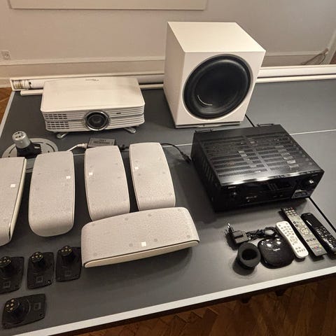 Jeg sælger min 5.1.2 Dolby atmos hjemmebiograf, bestående af argon front højtalere og argon subwoofer, klipsch center, Dali højdehøjtalere og baghøjttalere og Denon AVR-X2300W. Det hele fremstår lækkert, flot og velholdt.