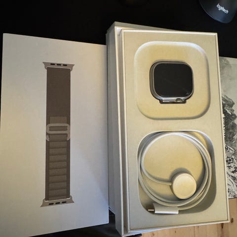 Velholdt Apple Watch ur med original rem samt en ekstra rem. Batteritilstand er på 96%.