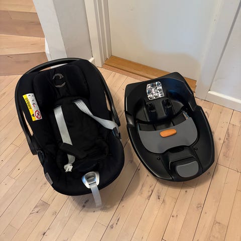 Kan lægges fladt. Der medfølger beslag så den kan sættes på Cybex kombivogn