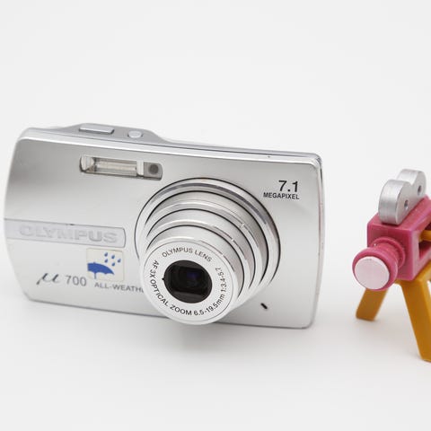 Olympus Mju 700 (Stylus 700) kamera med 7.1 megapixel opløsning og 3x optisk zoom. Det er udgivet i 2006 og fremstår i rigtig flot stand. Kameraet er mærket 'All-Weather'.
