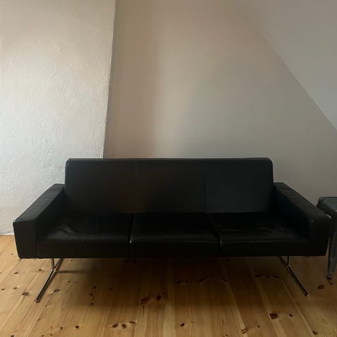 Udført i sort, ægte kvalitetslæder med slankt kromstel. Et roligt, arkitektonisk design med fokus på proportioner, materialer og komfort. Sofaen har et let visuelt udtryk og fungerer naturligt i både private rum og professionelle miljøer.