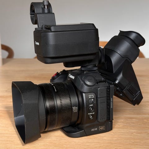 Canon 4K videokamera med 4K videooptagelse. Kameraet har en foldbar skærm og Canon 4K videoobjektiv. Velegnet til optagelse af videoer i høj opløsning.