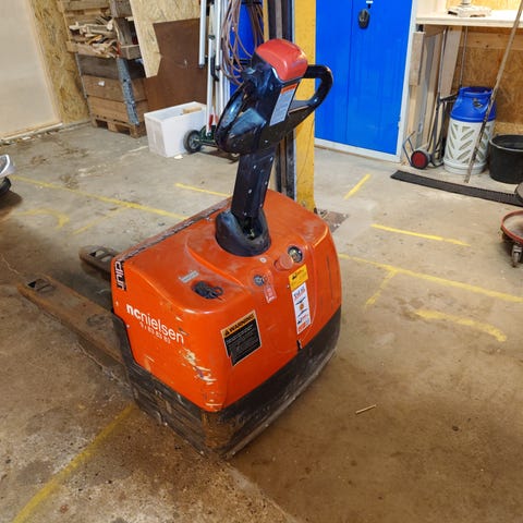 Linde D06 palleløfter med elektrisk drift. Maskinen har en brugstid på 1166timer. Designet til håndtering af paller i lager- og produktionsmiljøer.