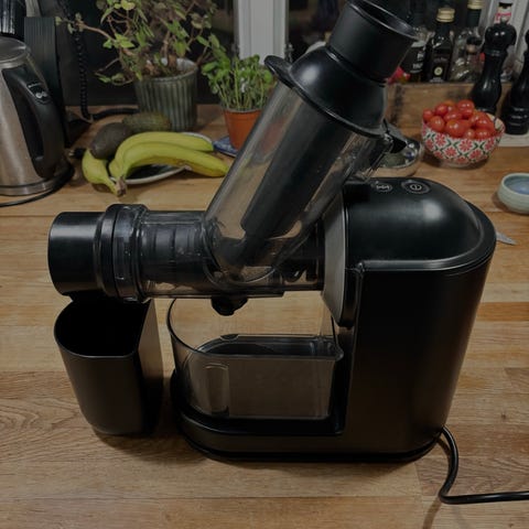 Juicepresser, kaffemaskine, og stempelkande. Trænger til en rengøring.