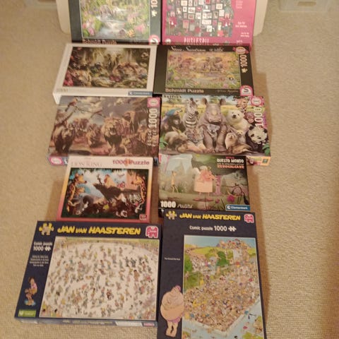 Flere puslespil sælges.