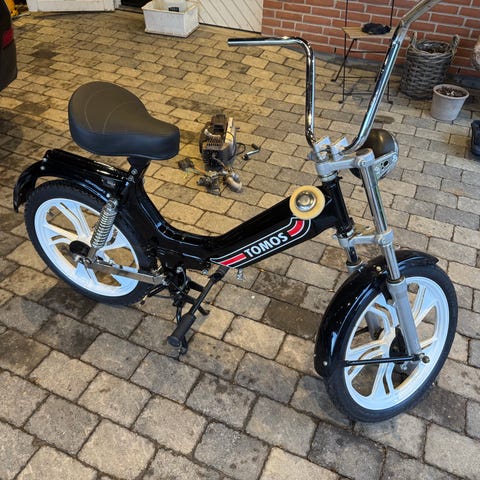 Originale Tomos-fælge medfølger hvis man vil skifte