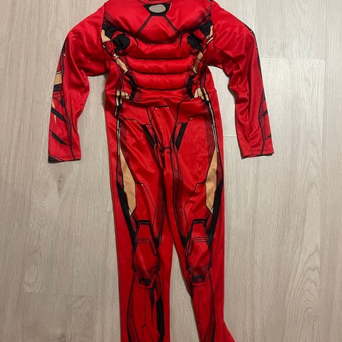H&M heldragt til drenge i størrelse 140. Dragten er multifarvet og lavet af polyester. Den dækker hele kroppen og har en tilhørende hætte.