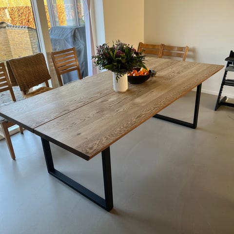 Massivt plankebord i god stand med enkelte brugsmærker (se billeder). Det kan komme til at stå som nye med en god slibning og noget olie.