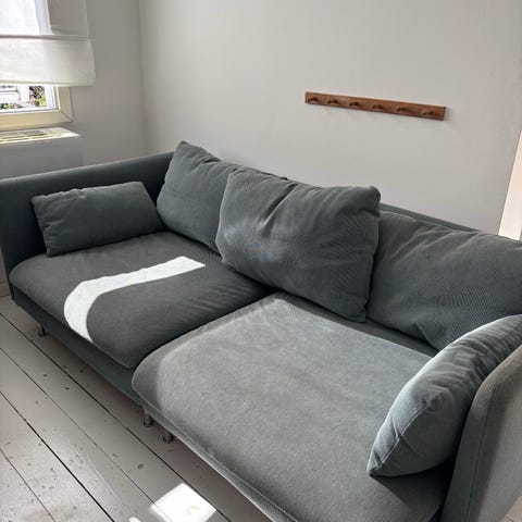 Fra hjem med hunde, hvilket den bærer præg af, ift div slitage og pletter (ikke uhygiejniske 😆)