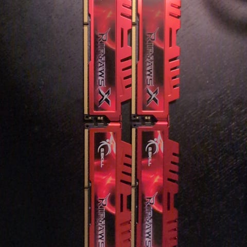 G.Skill Ripjaws V RAM med en samlet kapacitet på 16 GB, bestående af to moduler på 8 GB hver. Hukommelsen har en hastighed på 3200 MHz og timings på CL16-18-18-38 ved 1,35V. Designet til kompatibilitet med Intel XMP 2.0