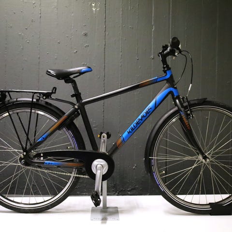 Kildemoes Bikerz med 26" hjul i sort og grøn. Cyklen har bagagebærer, skærme og ringeklokke samt Reelight magnetisk forlygte og batteri baglygte. Den er udstyret med 7 indvendige gear og fodbremse, egnet til bykørsel. Fra 2021.