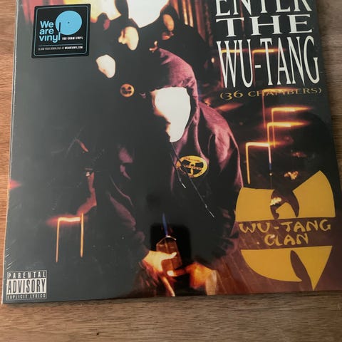 Wu-Tang Clan Enter the Wu-Tang 36 Chambers vinylplade med klassiske hiphop-numre. Pladen indeholder sange som 'Bring Da Ruckus', 'C.R.E.A.M.' og 'Protect Ya Neck'. Købt omkring 2020.