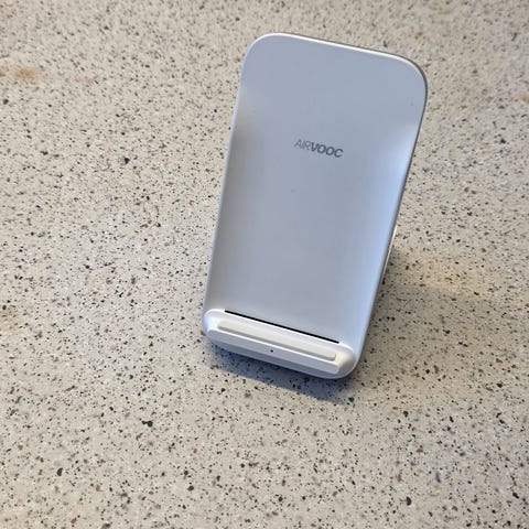 OnePlus oplader med hvid adapter og rød kabel. 160 watt