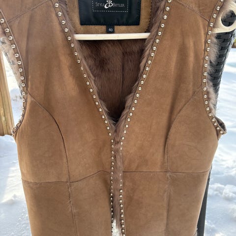 Rigtig flot vest fra Style Butler i gråt læder, stjernemotiv med nitter på ryggen samt mega blødt pelsfoer. Kan lukkes med hægter.