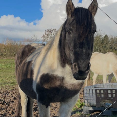 Hun er ikke redet på, men lige til ar gå igang med, hun er nem at have med at gøre, sød at strigle og trække med, går pænt I hestetrailer.