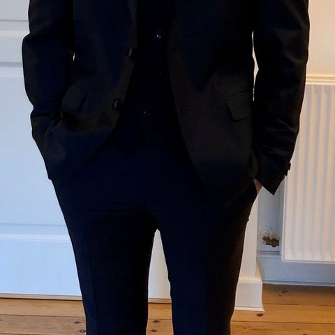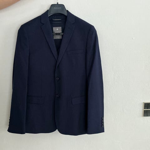Flot marineblåt jakkesæt - blazer med bukser fra ADOS. Brugt en gang til konfirmanden.