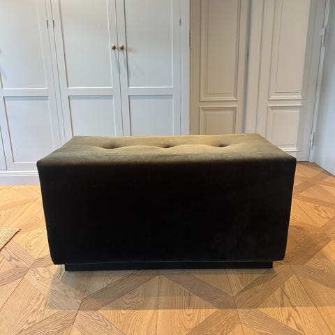 Fin stor grøn puf i velour.