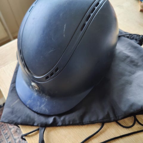 Dejlig BR ridehjelm i blå med blå glimmer. Liner 58-60. Brugt men uden skader og har ikke været i fald.
