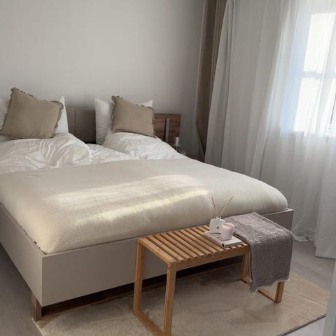 Sengen er til den blødere side og meget behagelig at ligge i. God kvalitet og komfort, som Svane er kendt for. Pæn og velholdt.