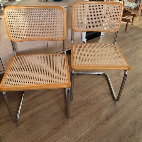 Søgeord : retro vintage møbler fransk flet stole krom stel Frisvingerstol barberstole flettet ryg og sæde