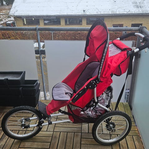 Let og stabil vogn med god affjedring, som er rigtig fin til både løbeture og gåture på ujævnt underlag.