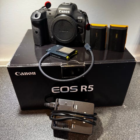 100% som nyt, Alt tilbehør findes. Købt af dansk forhandler den 2-DEC-2025. Pris er inkl. ekstra batteri. Har taget under 500 billeder! Canon RF Mount