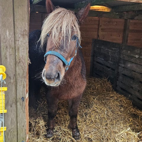Sød at omgåes og trives bedst i selskab med andre heste :)