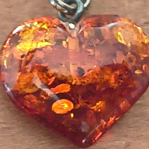 Søde hjertevedhæng i rav og sølv. Forskellige størrelser.